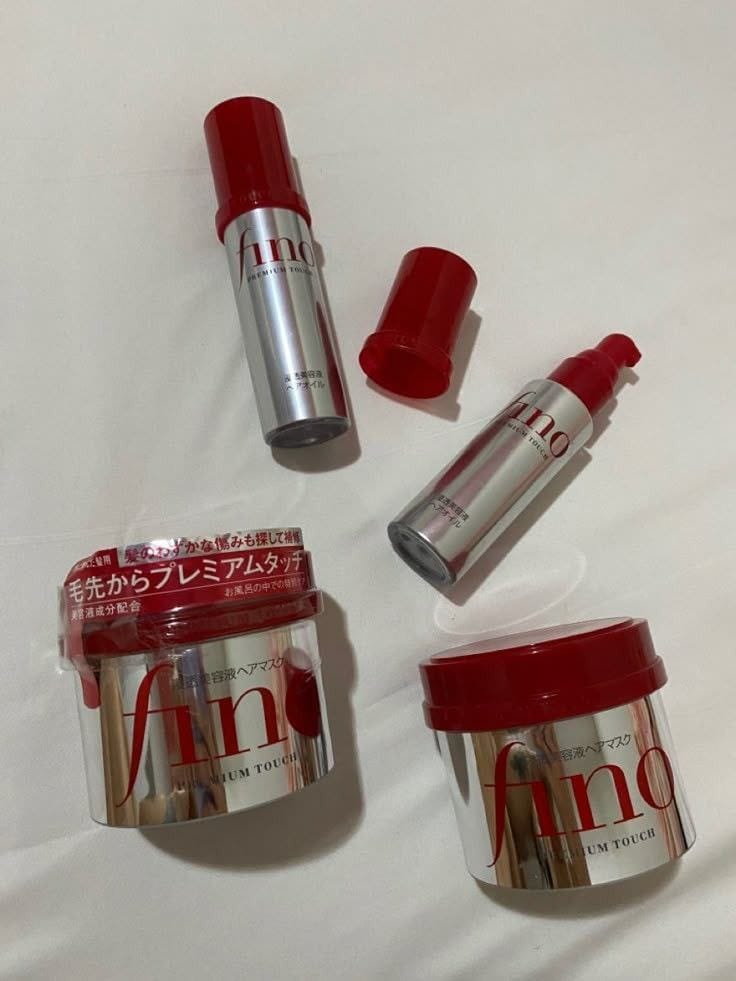تحتوي المجموعة على شامبو فينو بريميوم تاتش بحجم 550 مل، بلسم فينو بريميوم تاتش بحجم 550 مل، ماسك فينو لمعالجة الشعر بحجم 230 جم، وزيت فينو معالج ومرطب ومنعم للشعر من شيسيدو بحجم 70 مل.